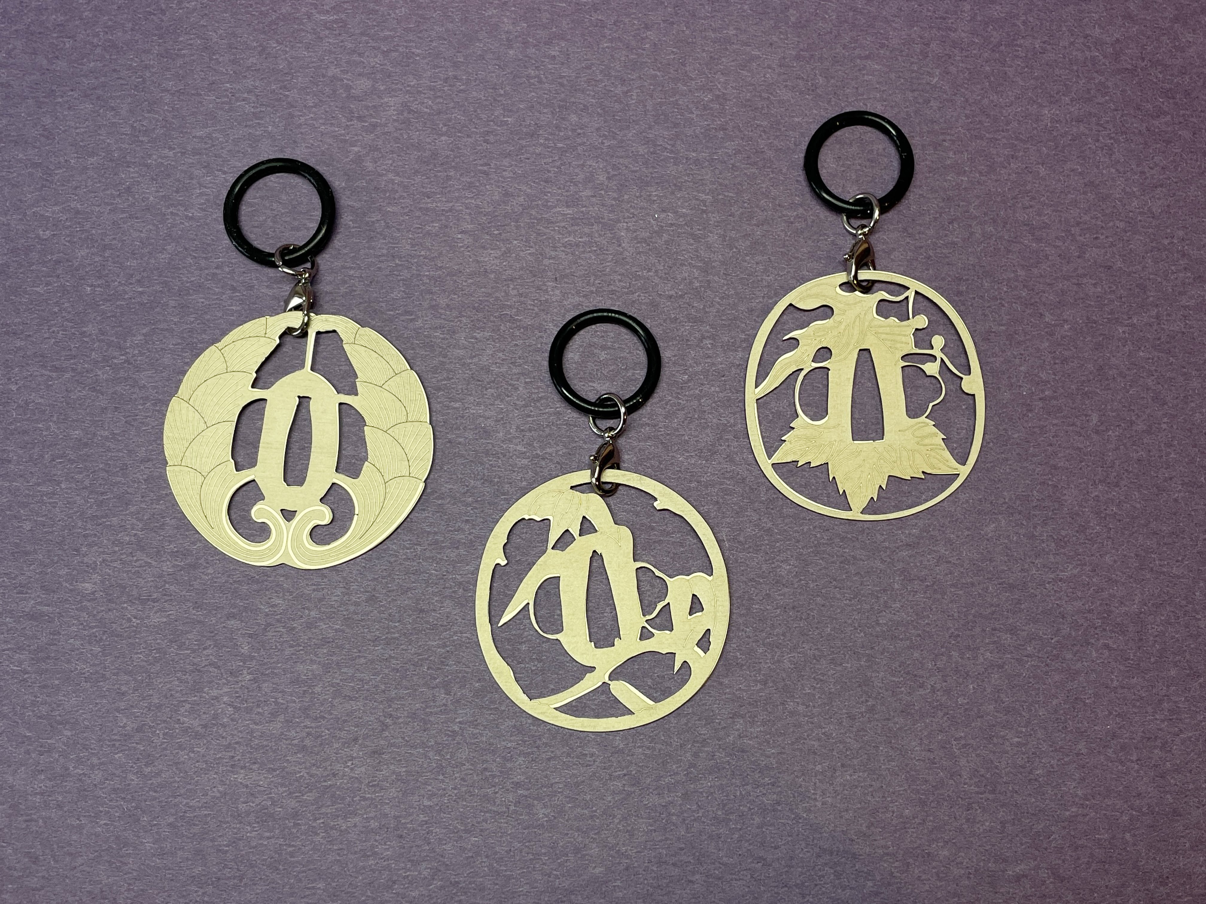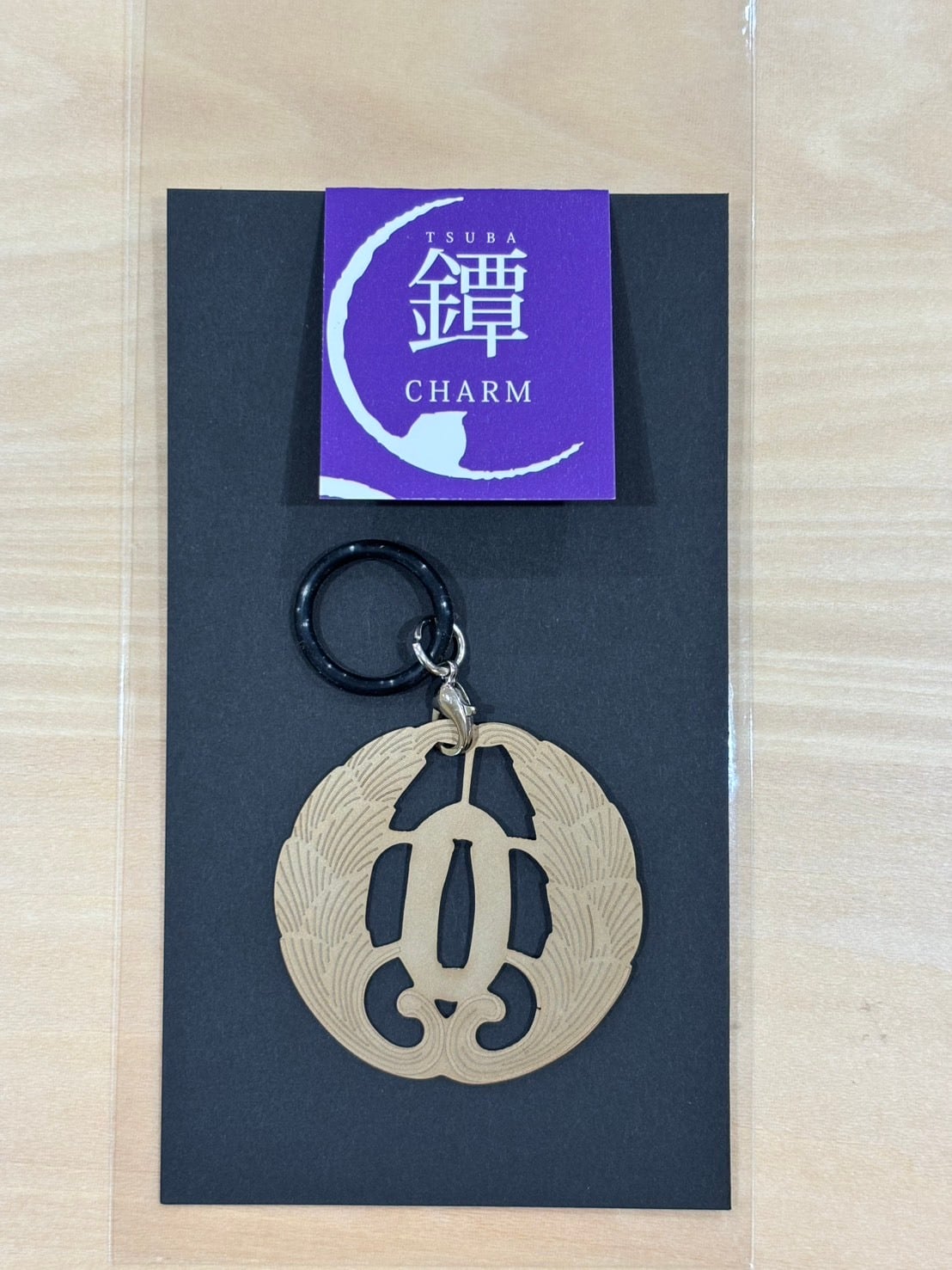 「刀装の美」鐔チャーム 抱き茗荷透鐔 ゴールド